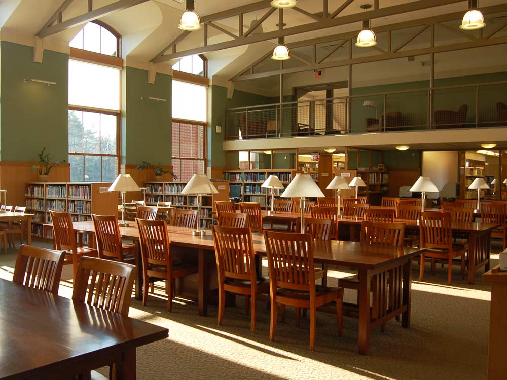 The Library was designed by architect Peter Gisolfi of Peter Gisolfi Associates from Hastings-on-Hudson, NY. His design resulted in a 54,000 square foot building that was cited by Library Journal as one of five need-to-see new library buildings. The building is designed in classic New England style, projecting a sense of solidity and timelessness externally while many windows add light and transparency to the structure internally. An achievement of Gisolfi's work is that the Library is LEED Gold certified for environmental sustainability; it was the first library in New England to meet this standard.