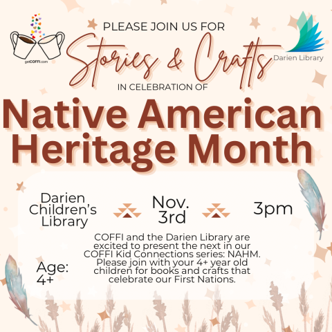Darien Library and COFFI invite you to our Native American Heritage Month Celebration. Join us to read books and crafts that celebrate our First Nations.
